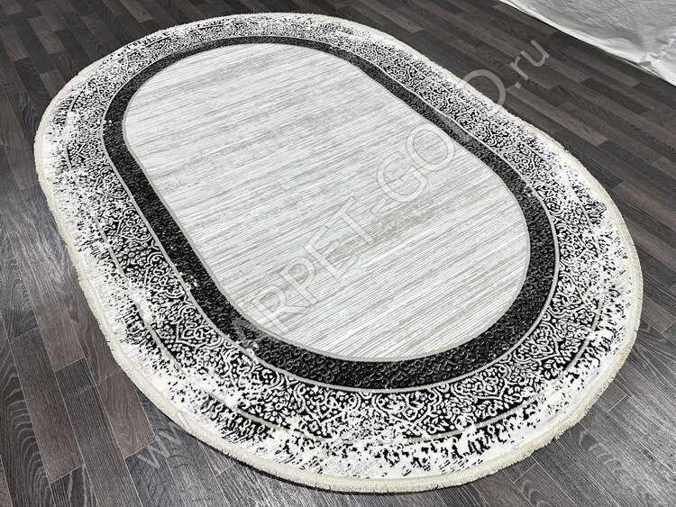 Ковер турецкий 16126-1 Gordion (Полиэстер хит-сет, серый) овальный